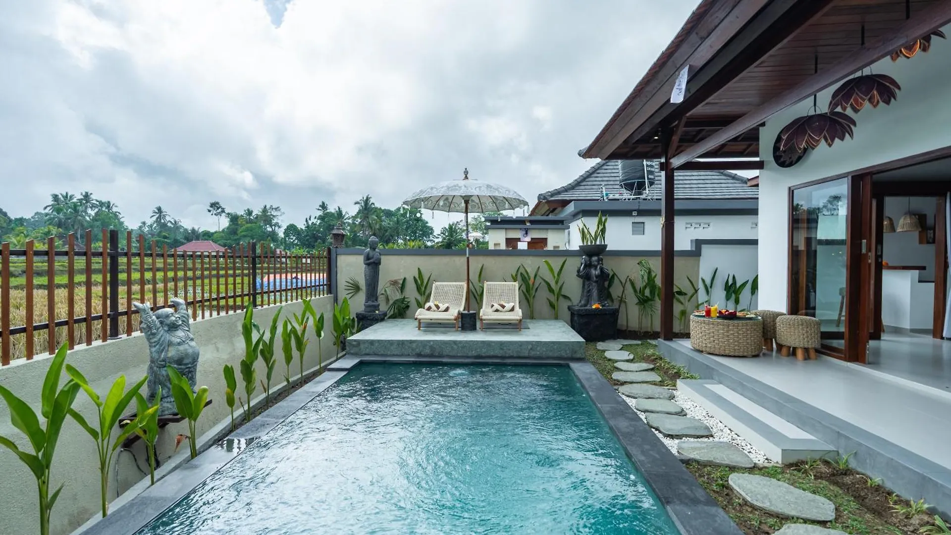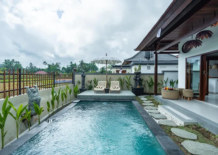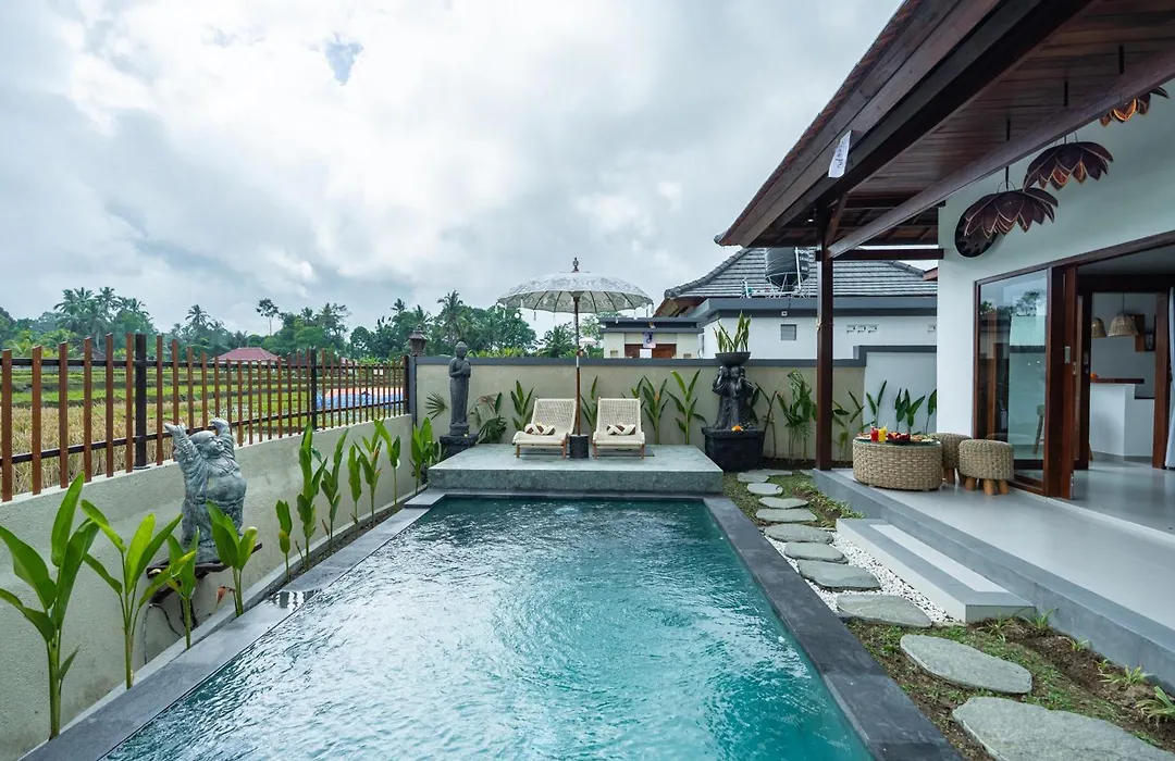Die Mahayani Ubud Villa Tegallalang liegt circa 25 Minuten von den Reisterrassen von Tegallalang entfernt und bietet Gästen die Möglichkeit, den Abend auf einer Terrasse mit einer Küchenzeile und einem Swimmingpool zu genießen.